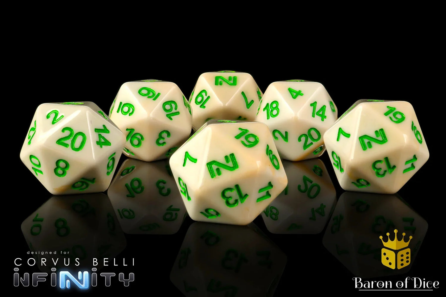 These are a Baron of Dice original, officially licensed from Corvus Belli.