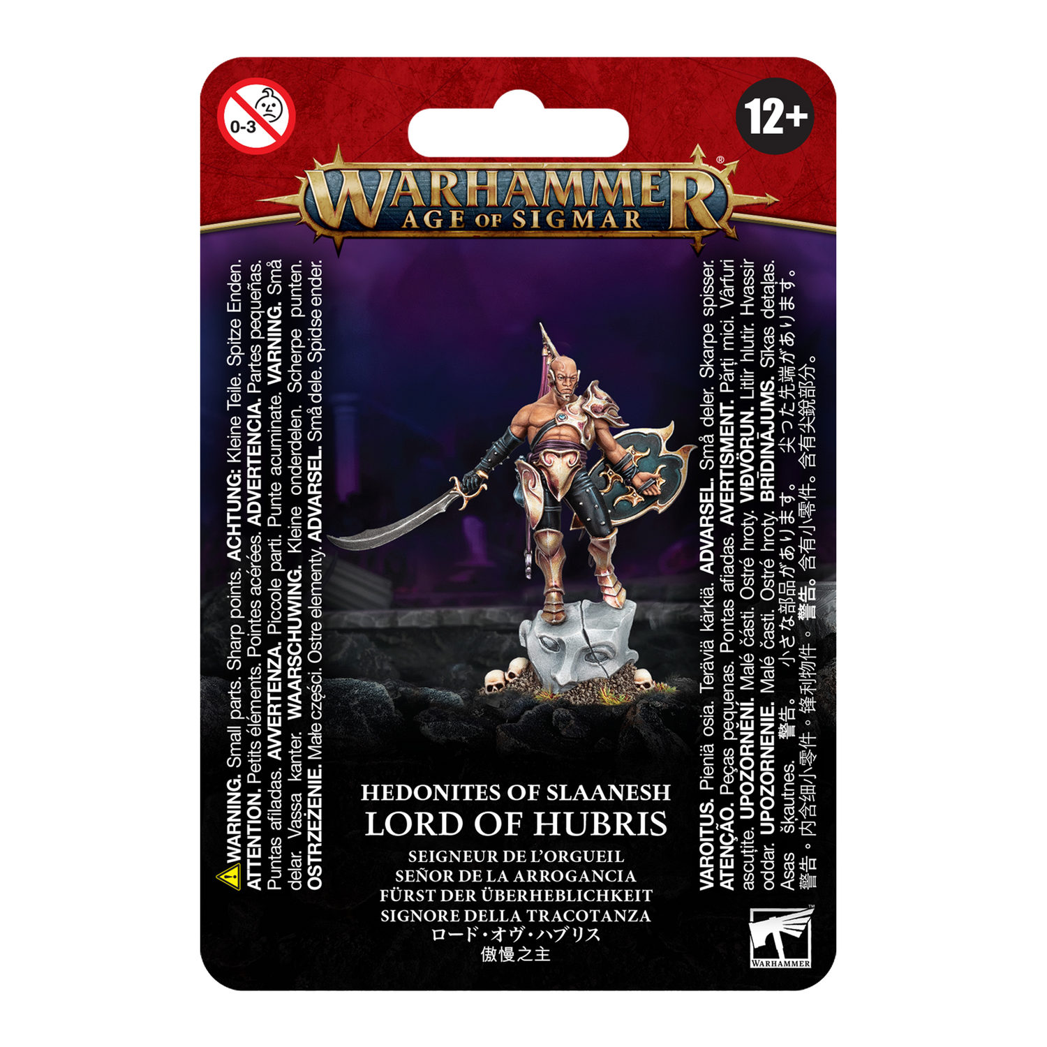 This multipart plastic kit builds a Lord of Hubris, a supremely arrogant duellist with skill to match. This elegant fighter wields a finely wrought scimitar in one gloved hand, swept aside from their bare chest in a clear gesture of challenge. Their shield and light armour are decorated with delicate trim, the symbol of Slaanesh, and a sneering sculpted visage – perfect for a warrior of such prestige – while the tassels of their headdress sway behind them, playing to the theatre of the upcoming duel.