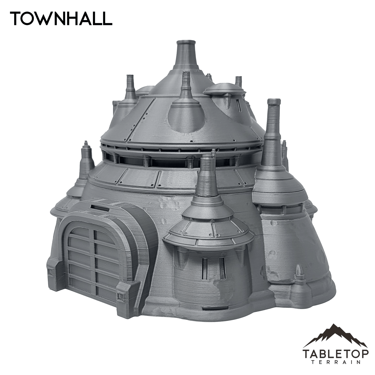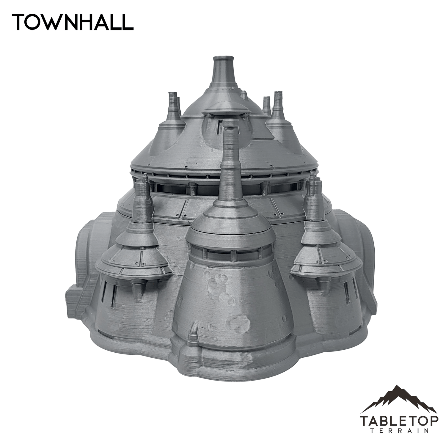 The Townhall is an Outer Rim styled building featuring a removable roof and detailed interior. The Townhall is printed in 40mm, 28-35mm (1:47), 20mm, and 15mm scale. We recommend the 40mm scale for Shatterpoint and the 28-35mm (1:47) scale for Legion.