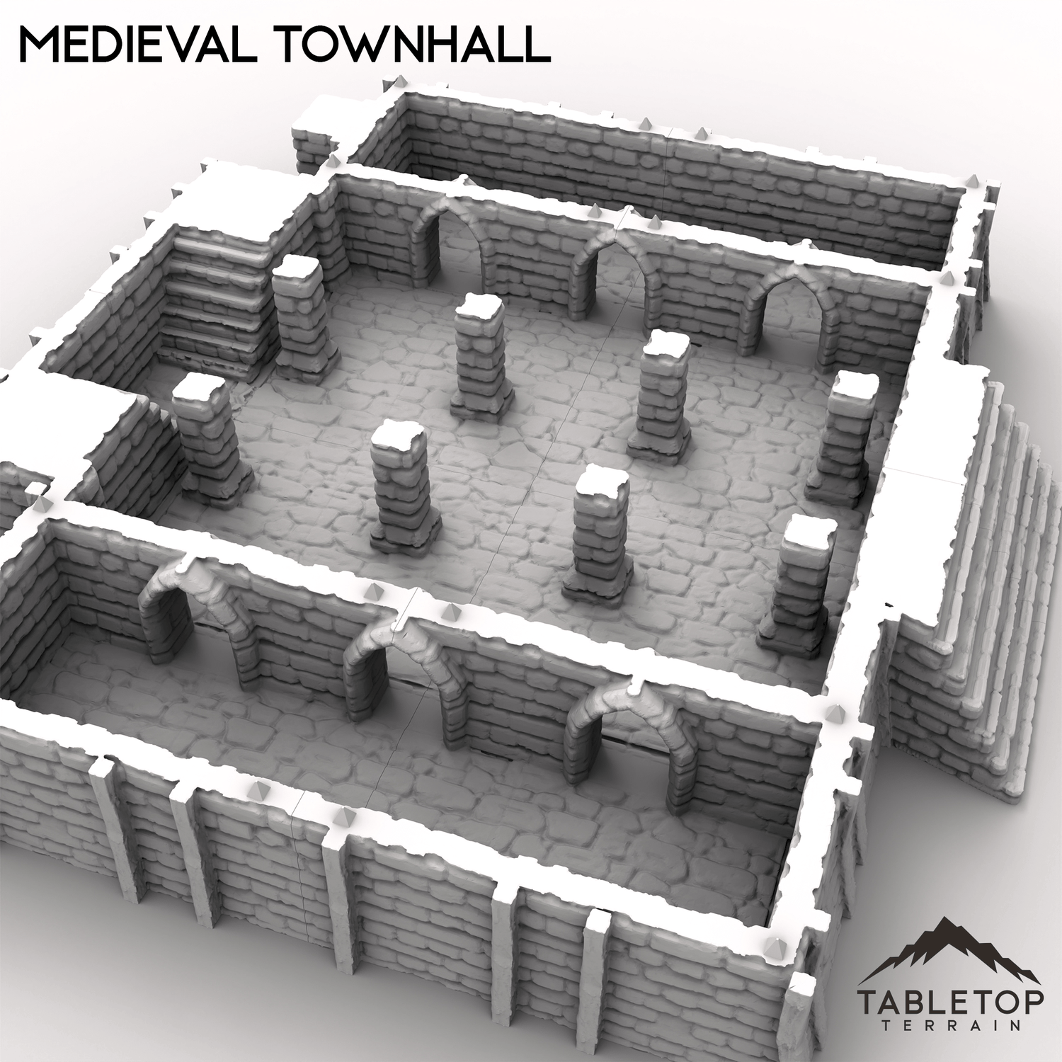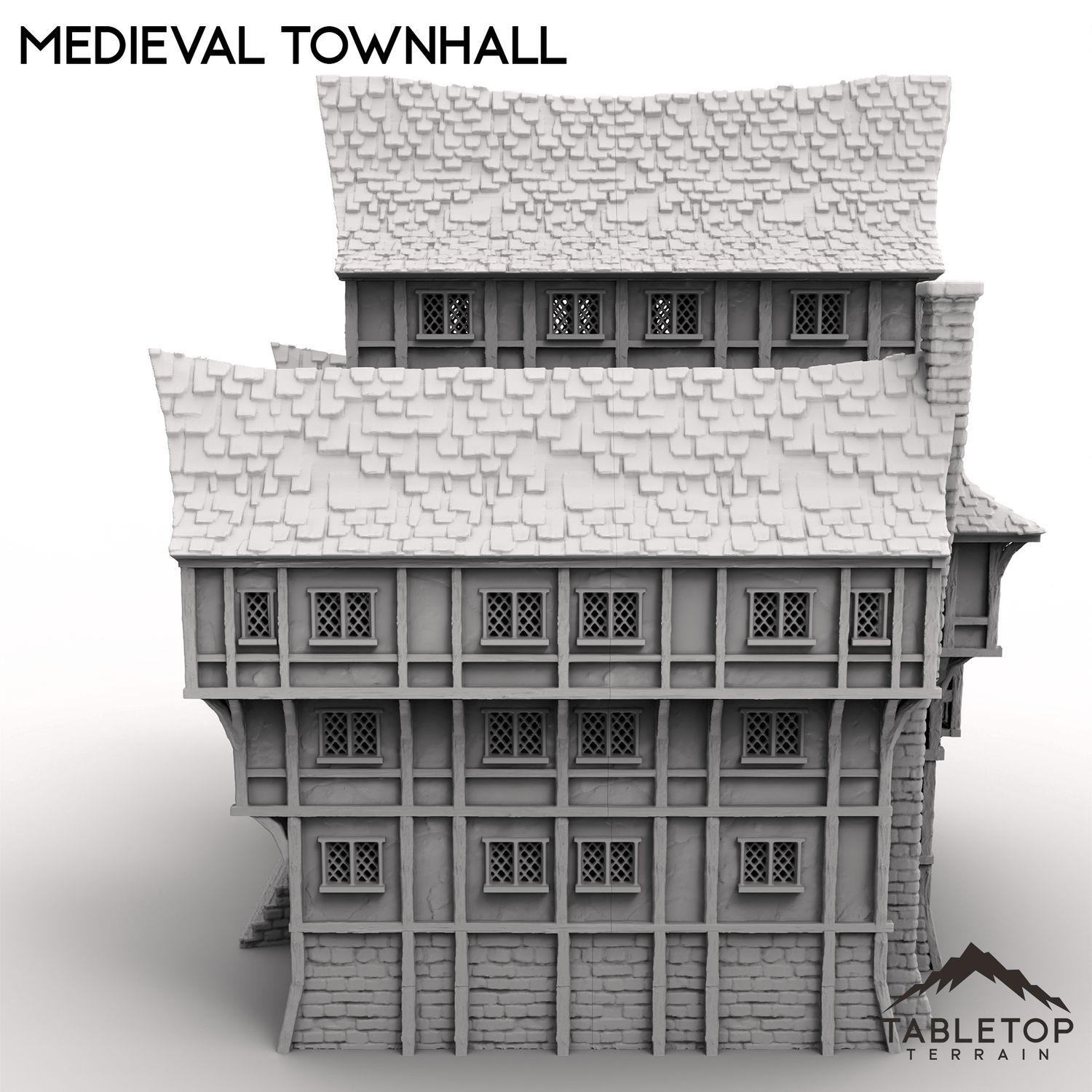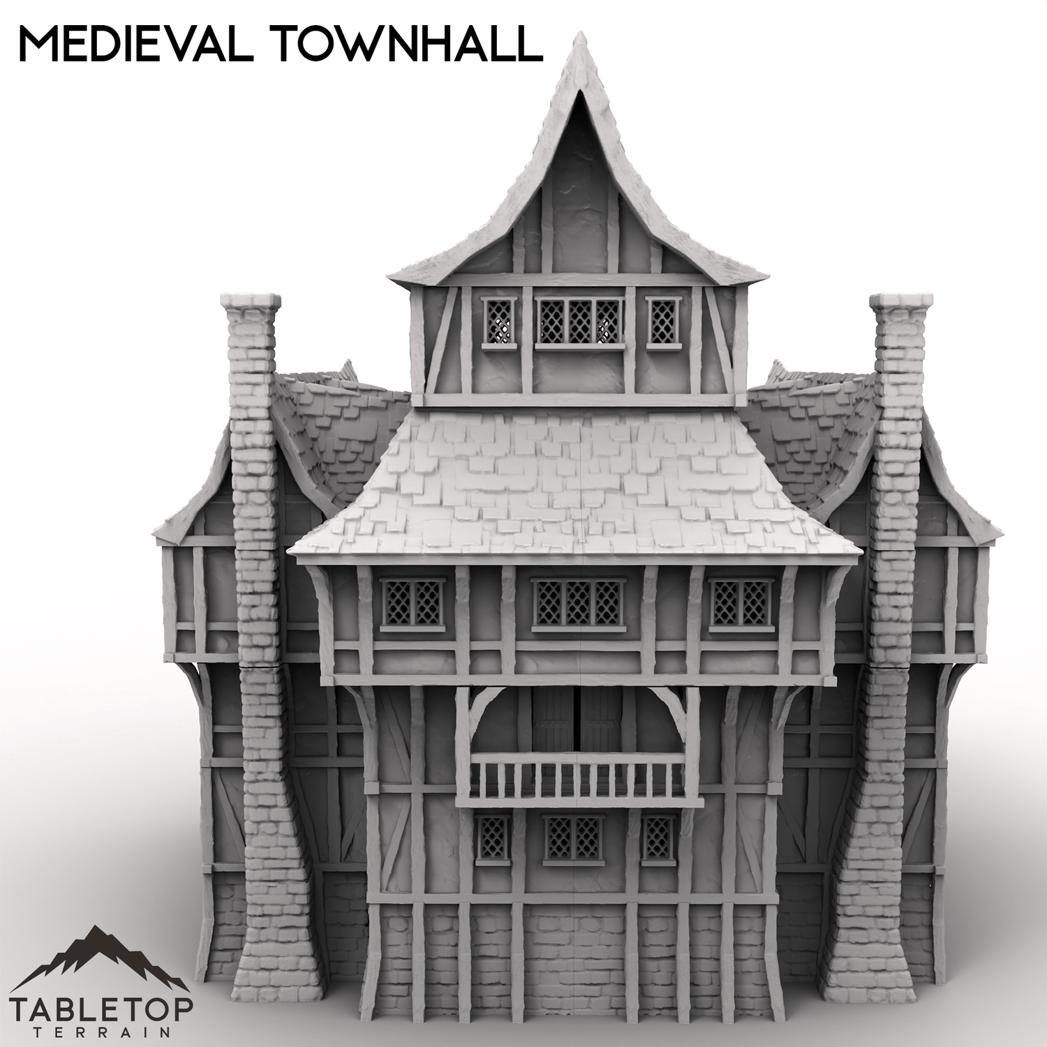 Standing at 1.5 feet tall, the Medieval Townhall is a huge 6-story building with intricate and detailed interiors made for minis. Each of the different floors has a unique design, including doorways and layouts that are all fully functional. The rooms and stairways are all set for minis at their scale, such as 28mm for most fantasy games or 38mm for most modern urban games. The building is design to be a townhall, but it would also work as a tavern or mansion with a full basement for storage.