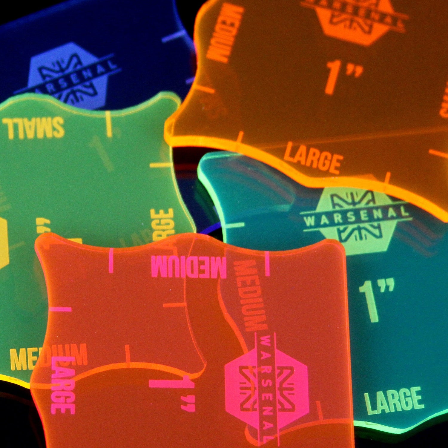 Cut from 3mm acrylic in a variety of fluorescent colors.