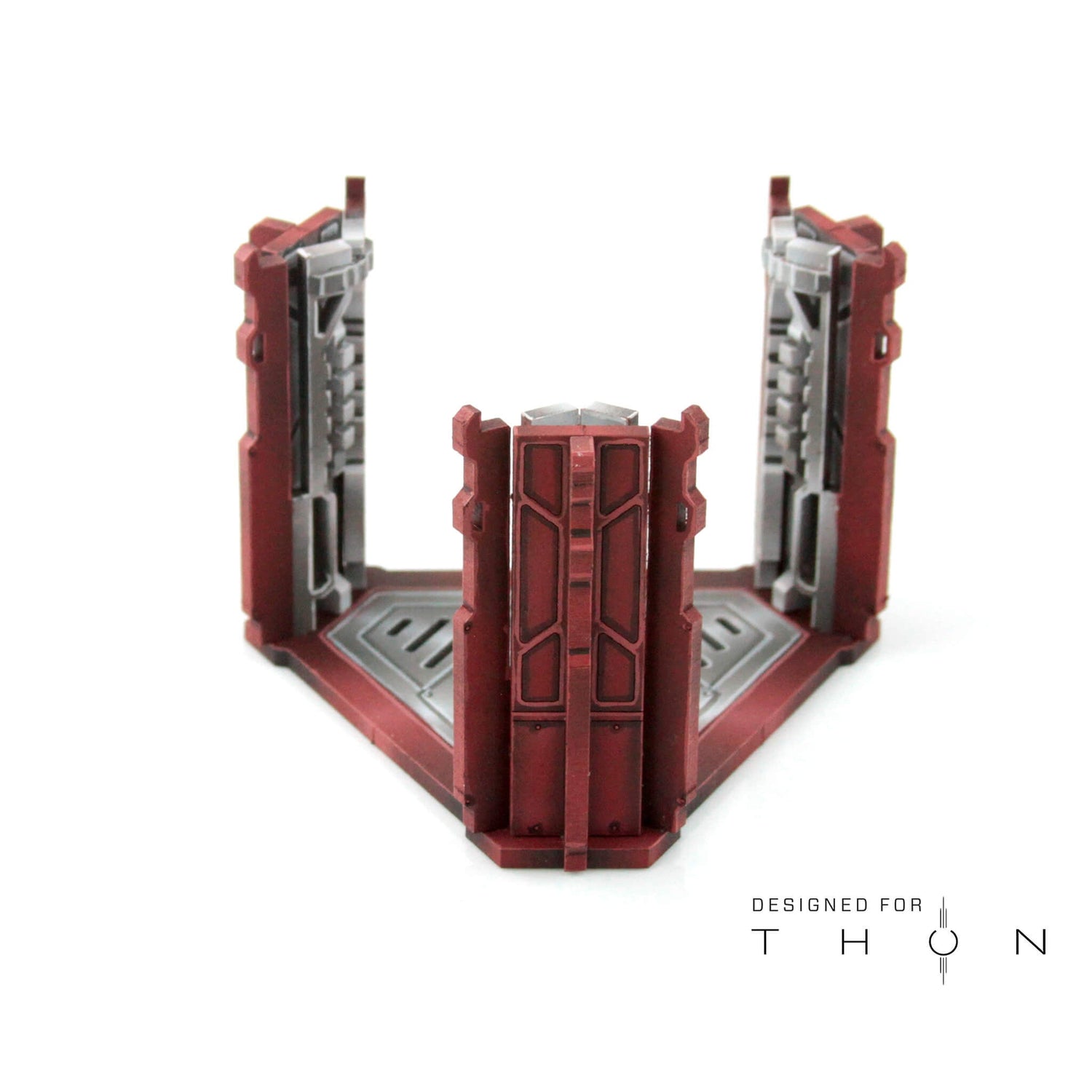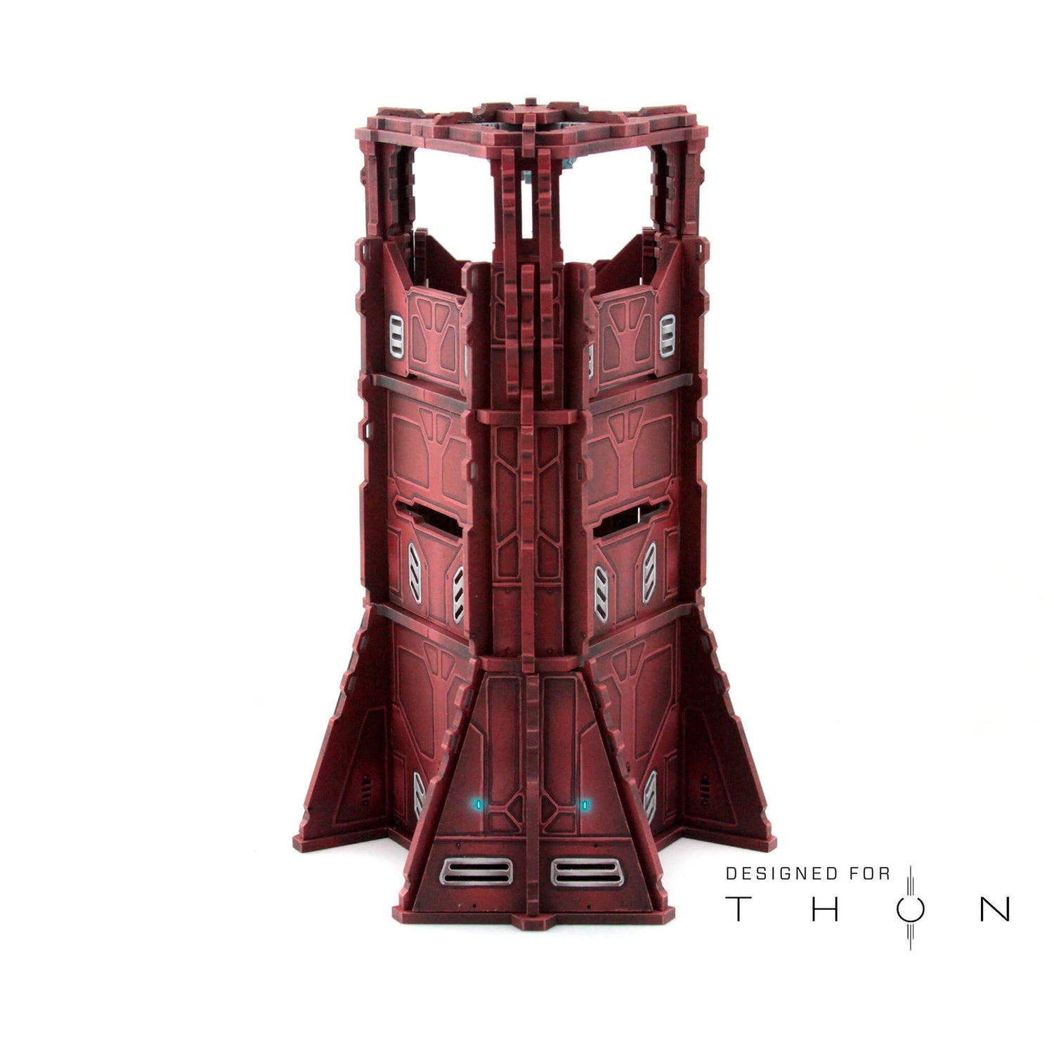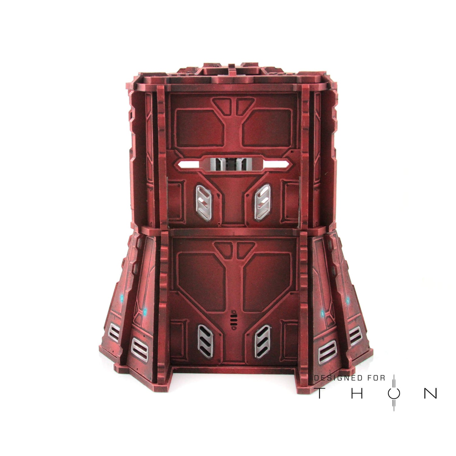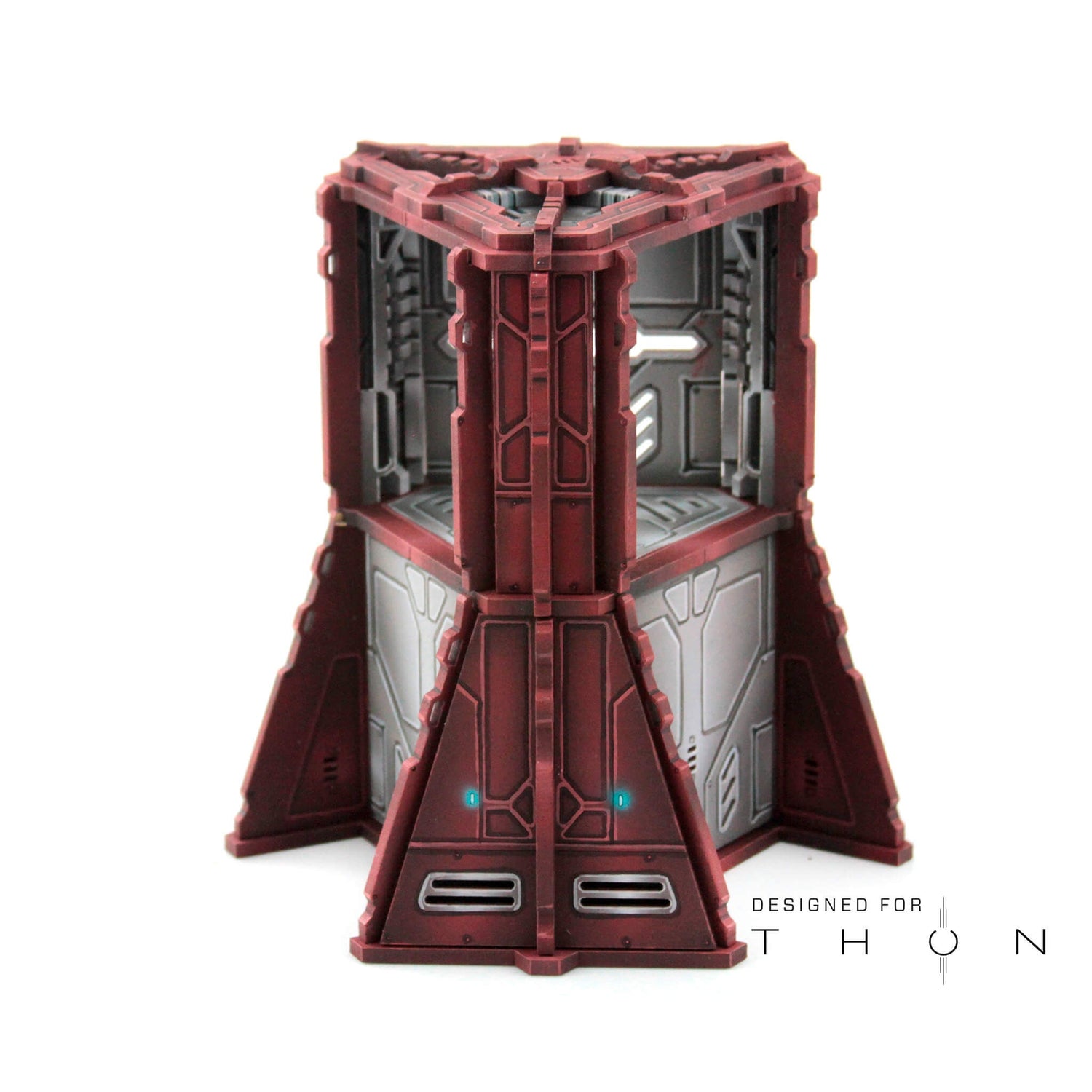The Acquiry Enhancer is a modular addition for the Thon Ord range of terrain. It includes three removable doors. It can stack with itself, or with the Acquiry Terminus and with the Acquiry Uplink as well. The Roof of the Terminus also fits atop the Enhancer.