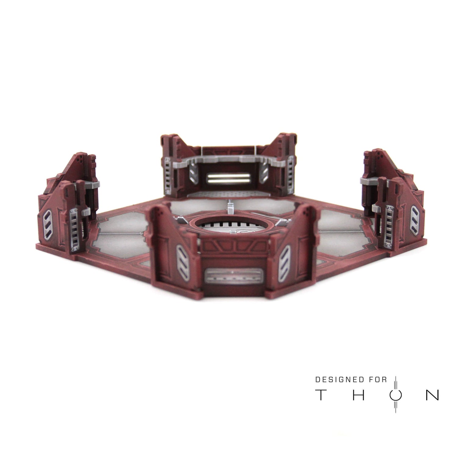 It includes four removable walls. All are interchangeable with the walls from the Ord Mocht. This piece is designed to work as a roof or as a standalone piece. The doors are designed to connect to the Ord Mocht and Ord Braun pieces.
