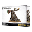 The Plagueclaw model comprises of a huge timber frame and several wheels of varying size, the wood for which is noticeably rickety and precarious. It is bolted together with numerous metal plates and rivets, and tuned by cogs and screws. The catapult itself is made of a large timber beam, the end of which contains a metal claw that holds a pile of toxic sludge, while a large chunk of warpstone counterbalances the device at the other end of the beam. The kit comes with two sets of crew to represent either Clan Skryre or Clan Pestilens, making it wonderful addition to any Skaven collection.