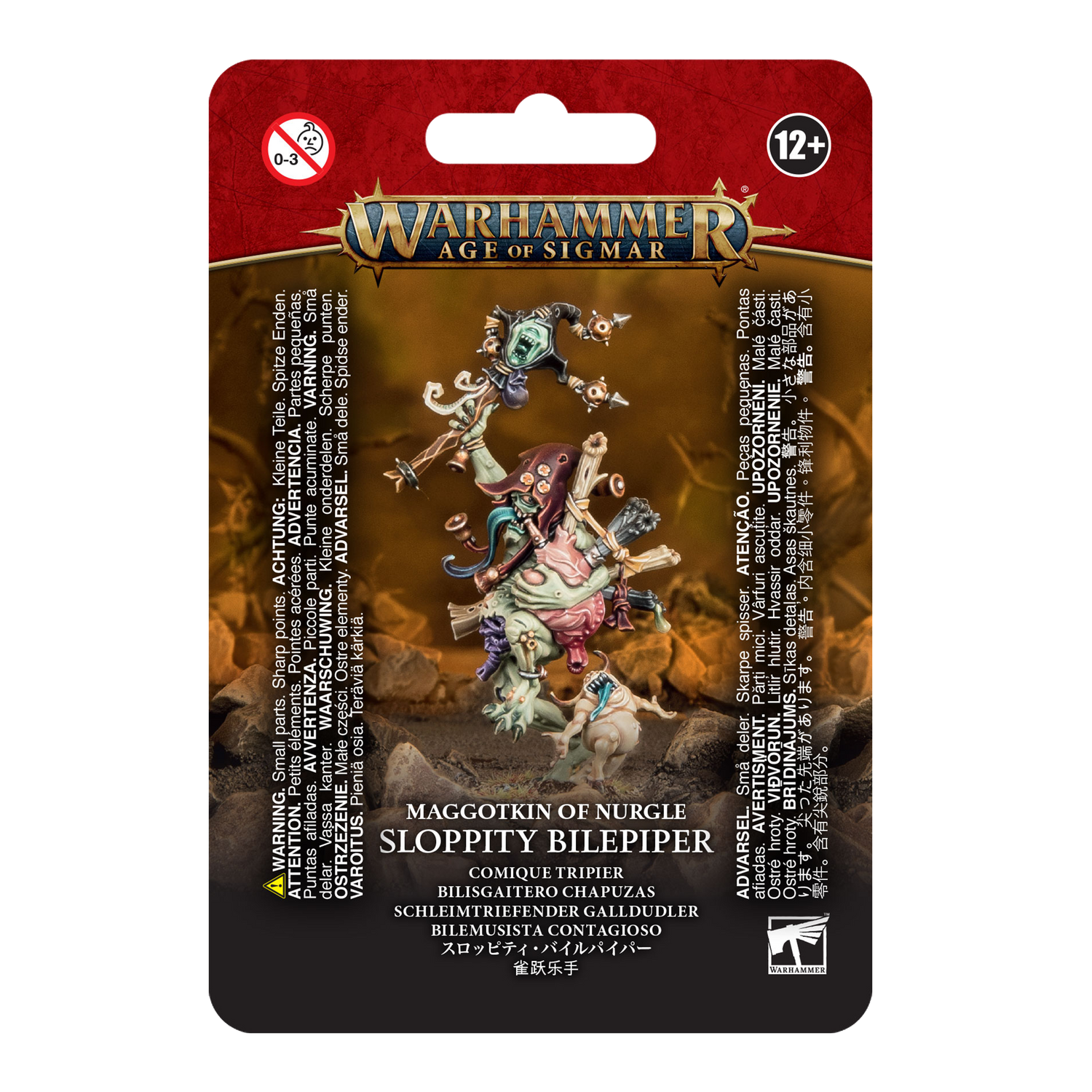 The Sloppity Bilepiper comes as 9 components, and is supplied with a Citadel 32mm Round base. This model can be added to Warhammer Age of Sigmar and Warhammer 40,000 armies.