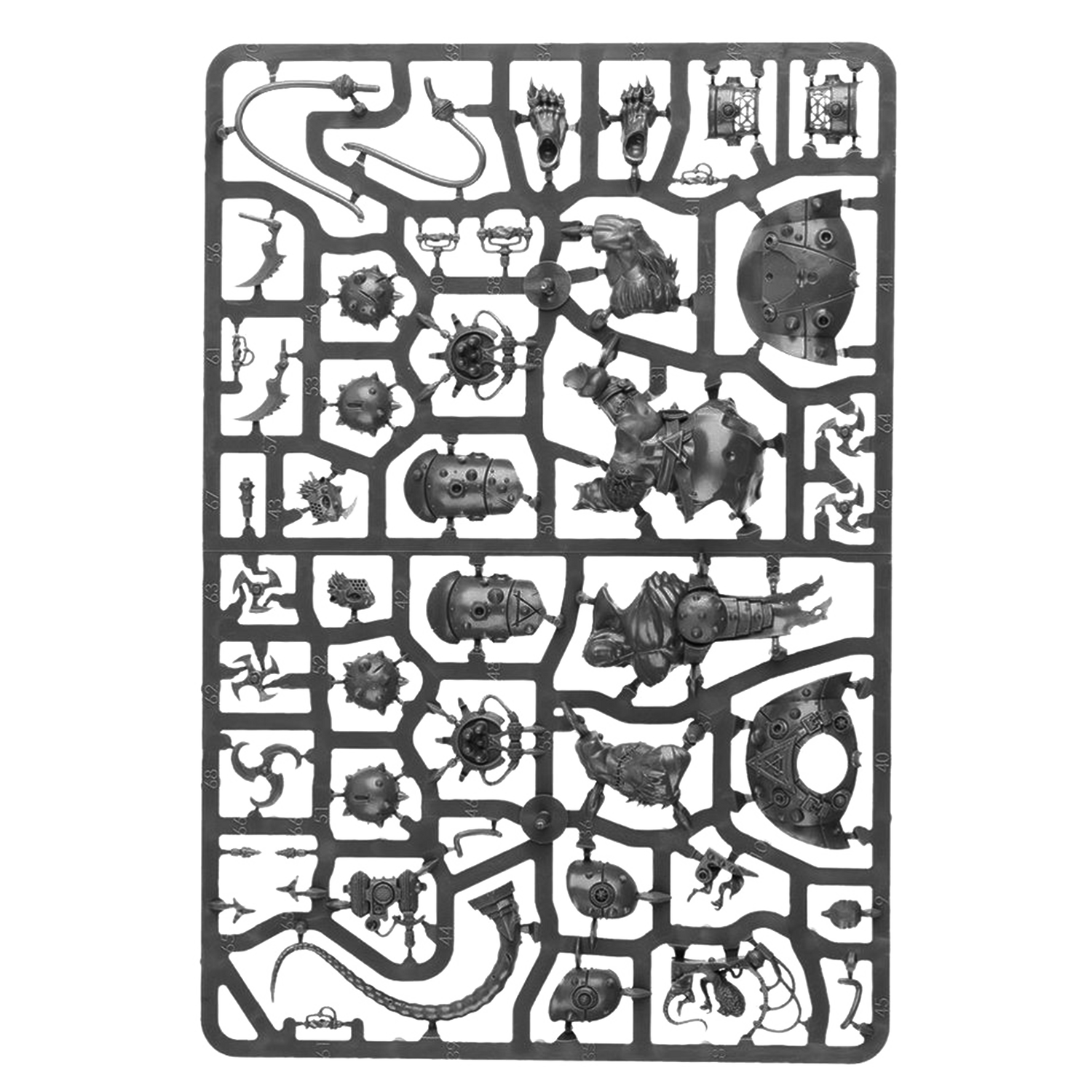 The Skaven Stormfiends have 101 components and are supplied with 3x 60mm round bases.