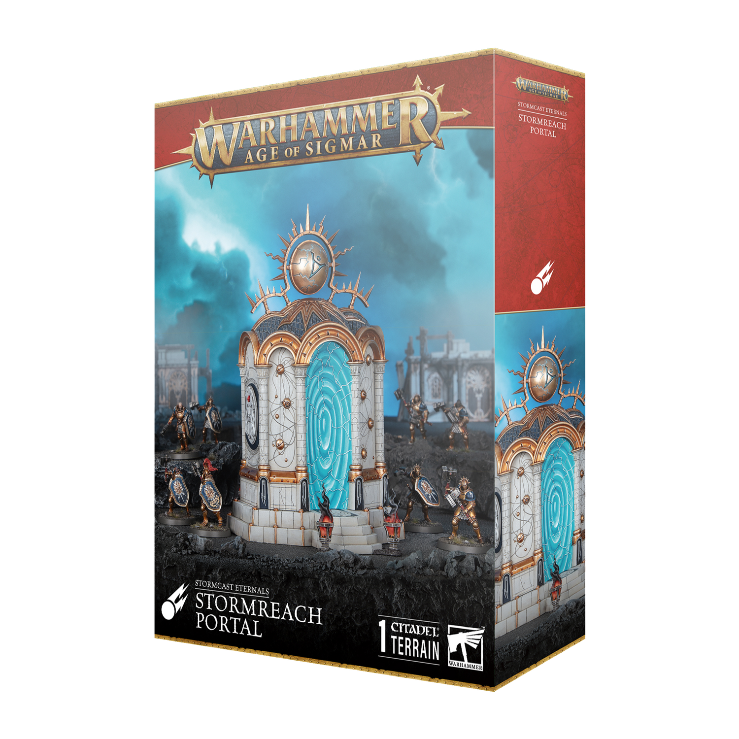 This multipart plastic kit builds one Stormreach Portal – a piece of faction terrain for Stormcast Eternals armies in Warhammer Age of Sigmar. This stunning piece is used by Stormcast Eternals to redeploy across the battlefield and features master-crafted iconography and sigils with the option of using the icon of Sigmar or the skull-faced icon of the Ruination chambers.