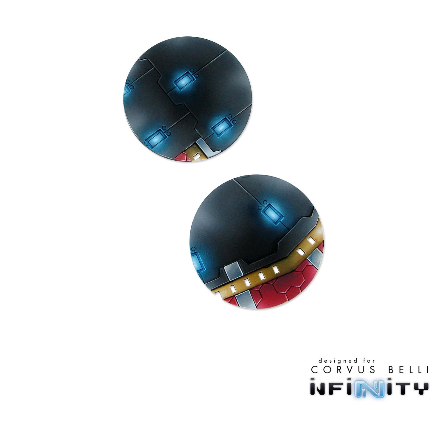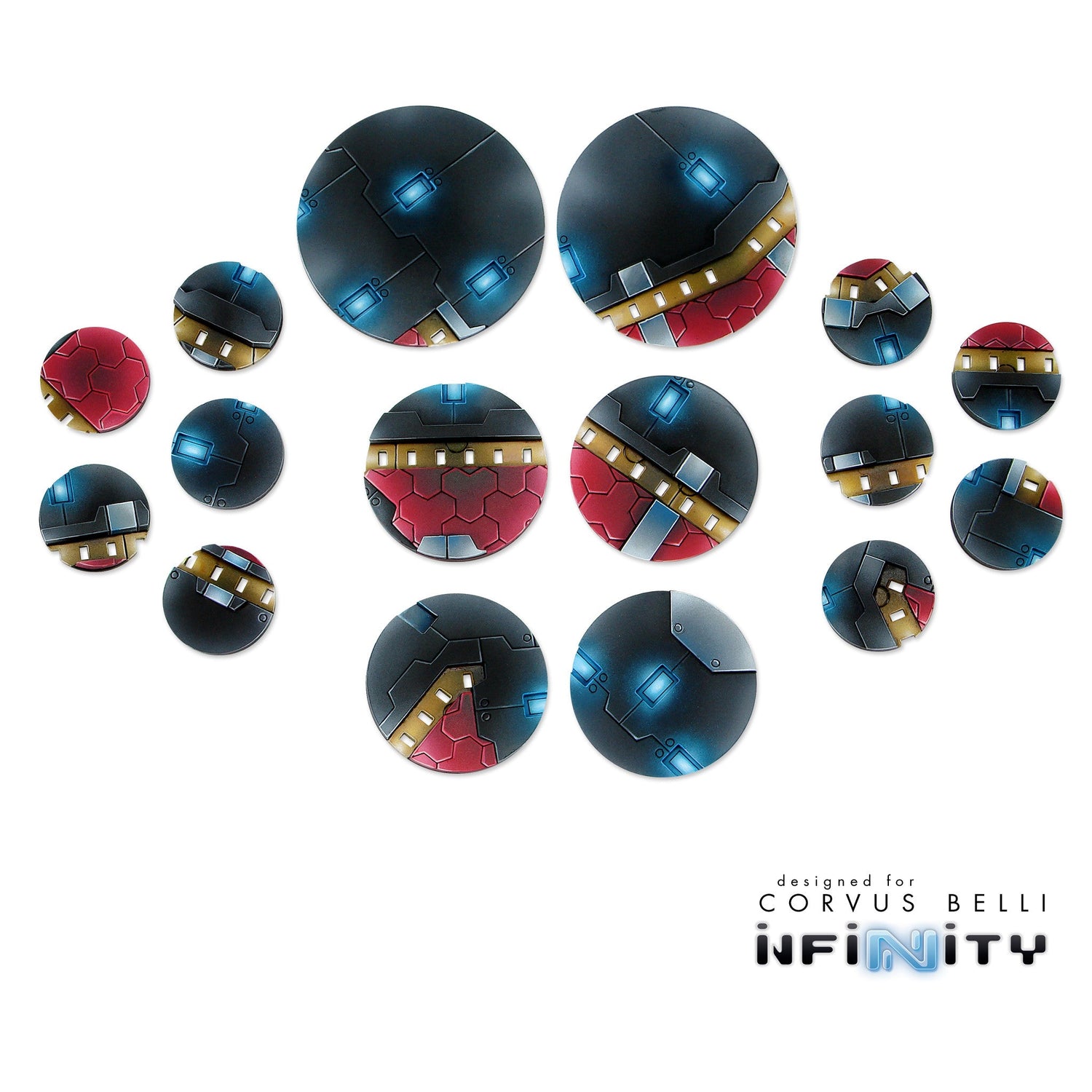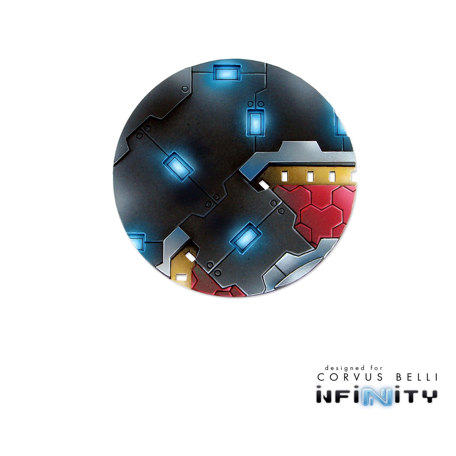 The bases can be mounted on standard Corvus Belli bases that you can magnetize for transport using our Rare Earth Magnets. They are lined up to work perfectly with our Infinity Status Discs.