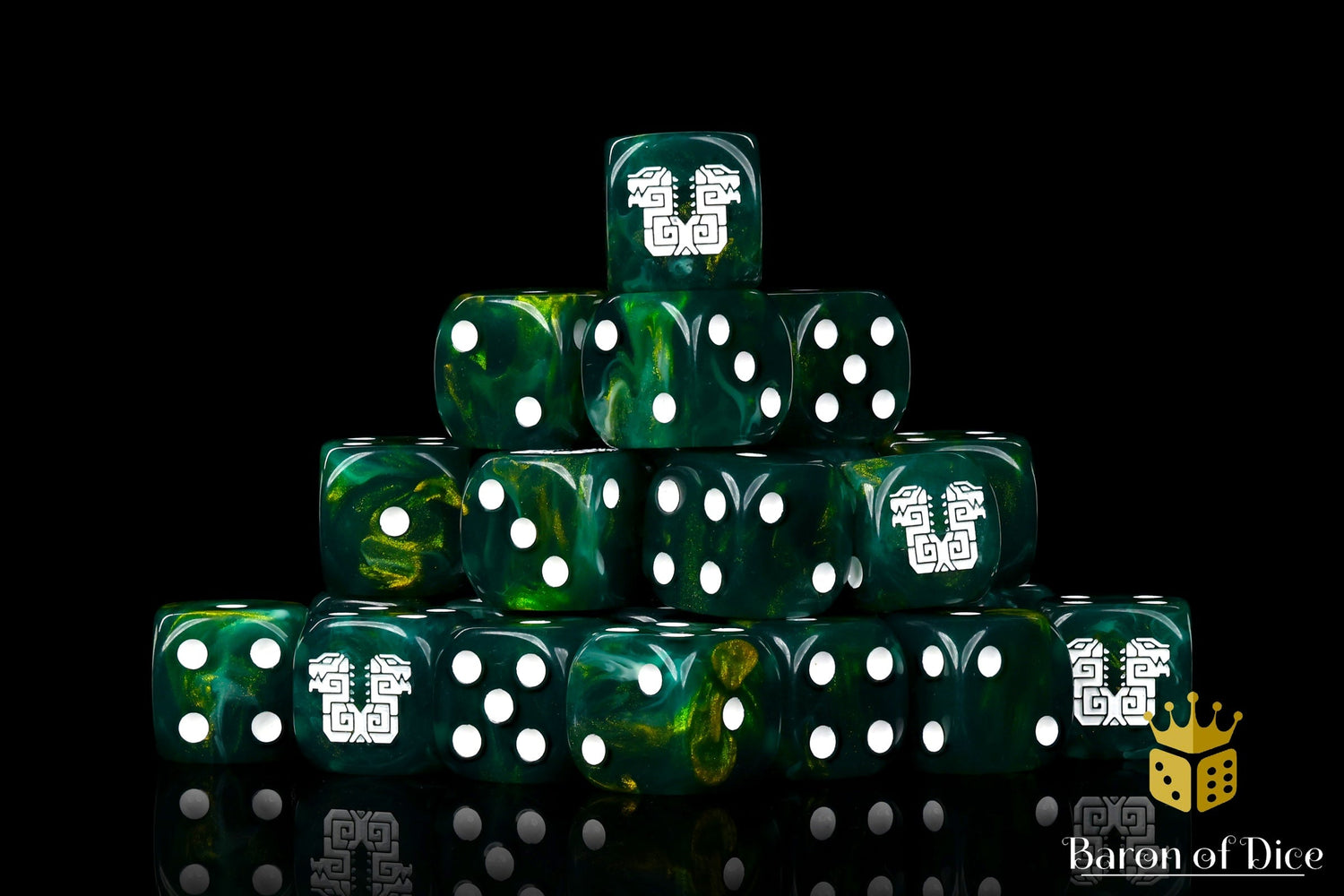 EntriesTwin Headed Lizard Dice - Green & Gold - x25 Dice / Round Corner is backordered - Items typically arrive to our warehouse in 7-10 business days.