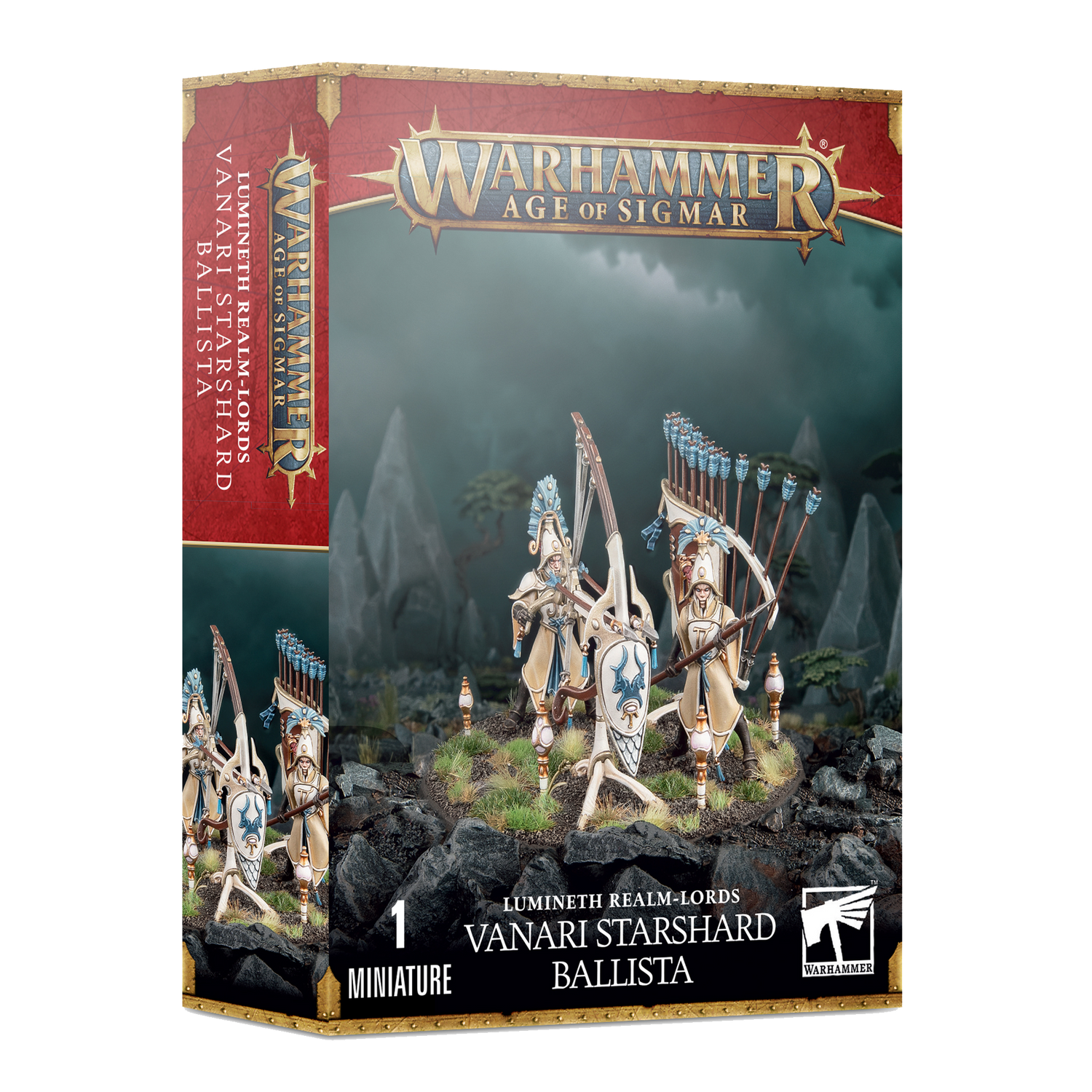 The kit is comprised of 47 plastic components, with which you can assemble one Vanari Starshard Ballista plus crew, and is supplied with 1x Citadel 80mm Round Base.