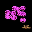 Wrath Of Kings acrylic Faction Objective Markers emblazoned with Faction logos for Wrath of Kings by CoolMiniOrNot. This pack comes with 10x 20mm, 5x 30mm, 5x 40mm and 5x 50mm objective markers.